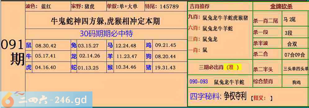 091期:30码期期必中特