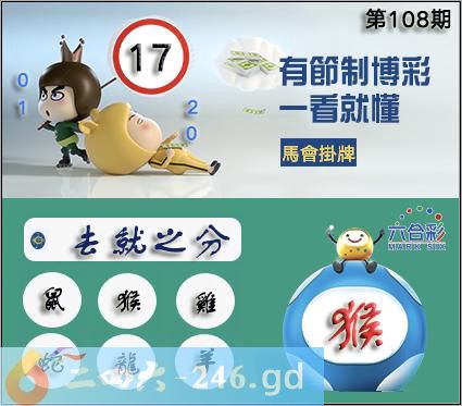 108期正版彩图挂:17 爆:猴 挂牌成语:去就之分 挂牌出肖:鼠猴鸡蛇龙羊