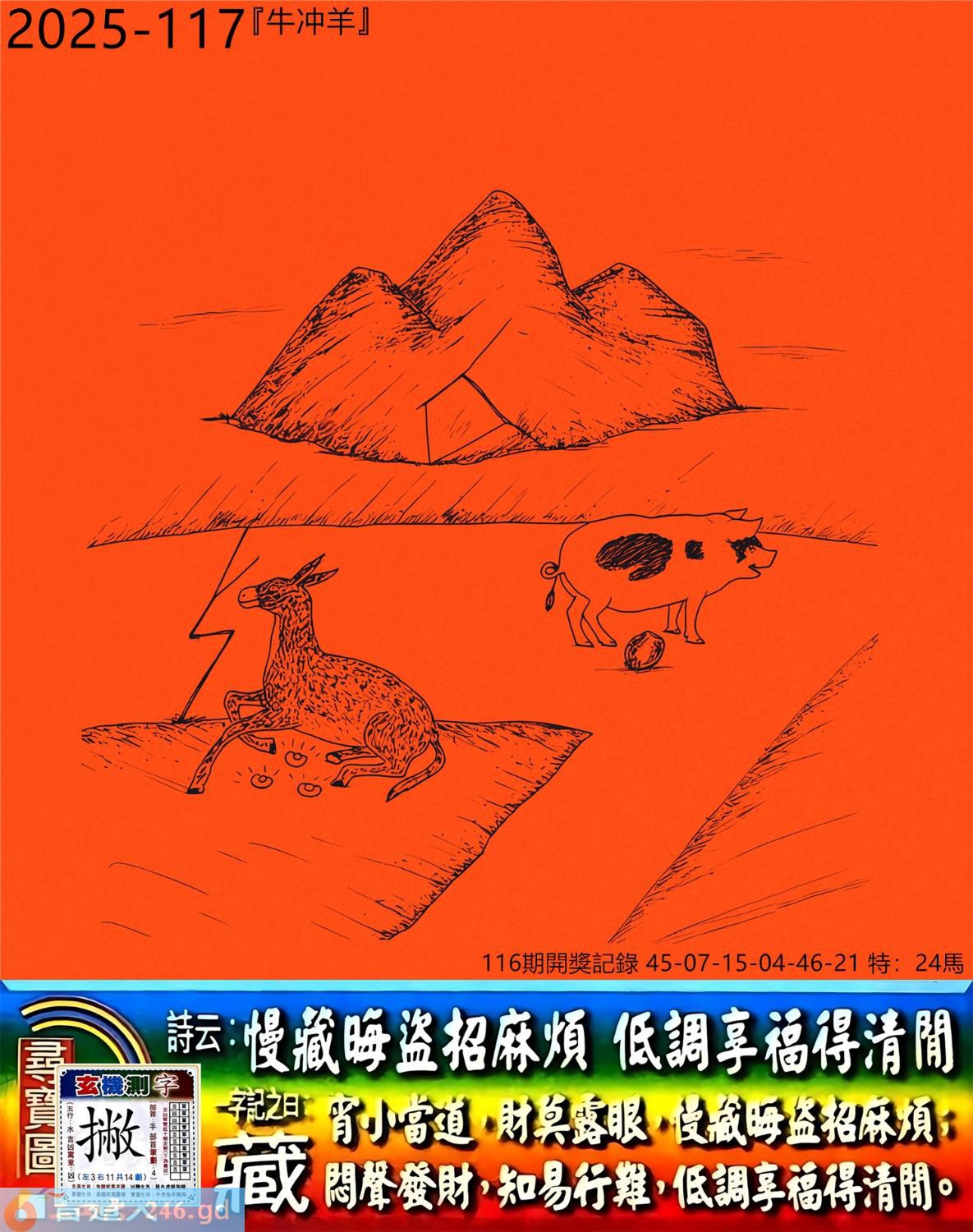 2025年11月4日117期羊(辛未)(涧下水) 117期:老版跑狗玄機一字記之曰:【藏】 詩云:慢藏晦盜招麻煩低調享福得清閒 宵小當道,財莫露眼,慢藏晦盜招麻煩; 悶聲發財,知易行難,低調享福得清閒。 玄機測字:《撇》 密圖詩:點將臺上閱三軍 《記》:三五必須多留意 特碼大小單雙句:折花送佳人 今期必中:劉備 117期:特碼歇后語 掂着猪下水过独木桥-----提心吊胆 117期正版四字梅花诗:云里雾里。 117期火车头:烧伤龙。诗:蛇死猪伤,马到边尾看其数。 117期香港第一手欲钱料:三年? 117期曾道人说:“绿?” 117期另版四字梅花诗:长江滚滚。 117期香港第一手欲钱料:欲钱寻长寿的秘密。 117期曾道人说:“为什么游目骋怀最开怀呢”? 117期:二字經:向中 117期:袋子是特码 117期:智力金壤:完璧归赵 117期:信箱紅字:【後患無窮】 117期:【暗碼:02-16-25-30】 117期:一語中特:【三言兩語】 發財玄機圖:緊密相連呆若木頭圖中明雞紅藍 117期:藏寳圖 新:所得平时为郡乐 老:东南永作金天柱 禁:猪禁:2尾玄机字《湖》 2025年117期【生活幽默】版 〖你是約翰〗 約翰在機場侯機,閑來無聊站到一臺體重機上,熒屏上馬上出現“你是約翰,體重87公斤,飛往紐約。”的字樣。約翰十分驚奇,他十分鐘以後戴着墨鏡又站到這臺機器上,熒屏上馬上又顯出“你是約翰,體重87公斤,飛往紐約。” 約翰更加感到神奇了,他跑進洗手間刮掉胡子,换掉衣服又來到這機器前,焚屏上馬上顯出“你仍是約翰,你的體重仍是87公斤,你的飛機已于10分鐘前飛走了。”
