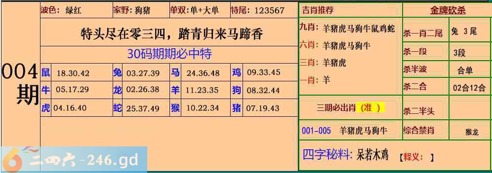 004期:30码期期必中特