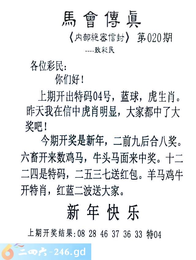 020期:首发推荐:≮馬會傳眞≯→(香港正版)