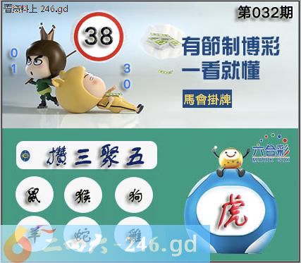 032期正版彩图挂:38 爆:虎 挂牌成语:攒三聚五 挂牌出肖:鼠猴狗羊蛇鸡